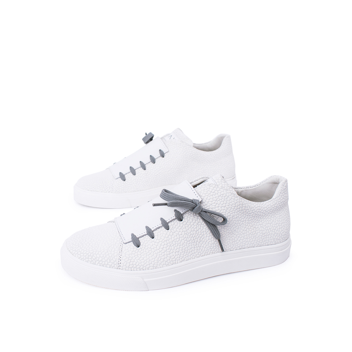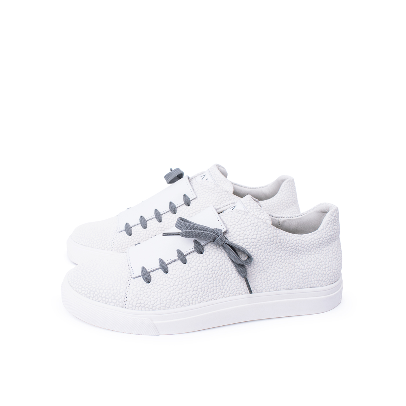 Forget about the dull sneakers! With its textured white leather, one-side lacing and grey shoe laces, it’s a new take on everybody’s favourite white trainers. This pair will be essential for any minimalist wardrobe this season!